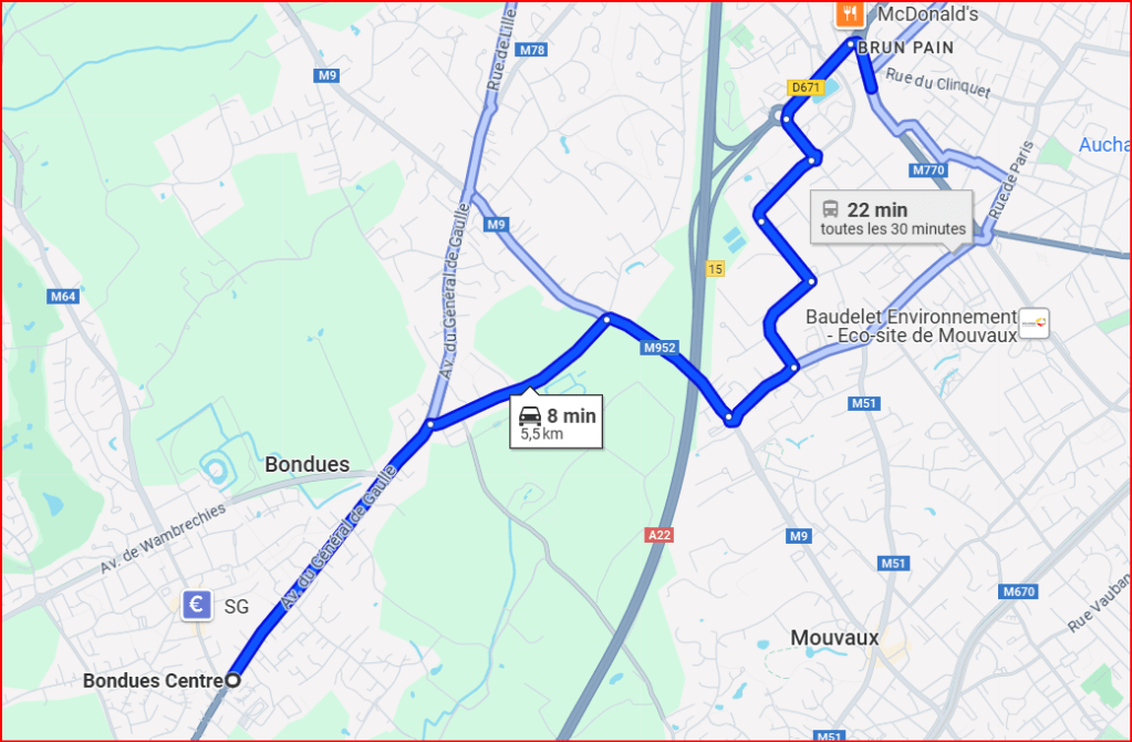 - Commencez votre trajet en prenant l’Avenue du Général de Gaulle (M617). Continuez tout droit et suivez les panneaux indiquant M952.