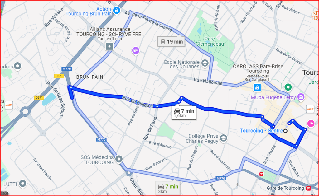 Itinéraire en voiture : Tourcoing Centre vers Cabradtoo